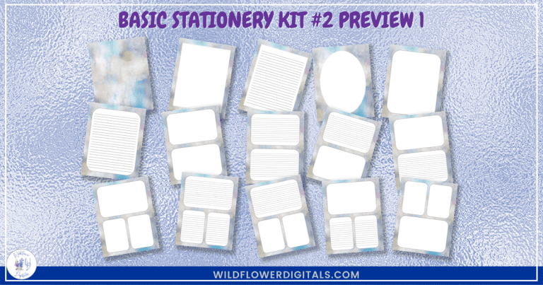 This Basic Stationery Kit #2 is a pretty mini-package of champagne teal watercolor designs that comes with 40 total pages — 1 background/cover page and 39 stationery styles — complete with commercial use rights so you can use them with: